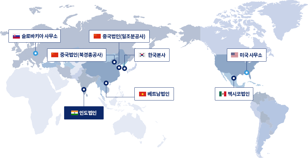 인도법인에서 생산된 제품은 현대차 인도공장을 비롯해 사우디 CEER 등 주요 고객사에 공급되며, 세계 3대 자동차 시장인 인도를 기반으로 중동∙유럽까지 시장을 확장해 나가겠습니다.